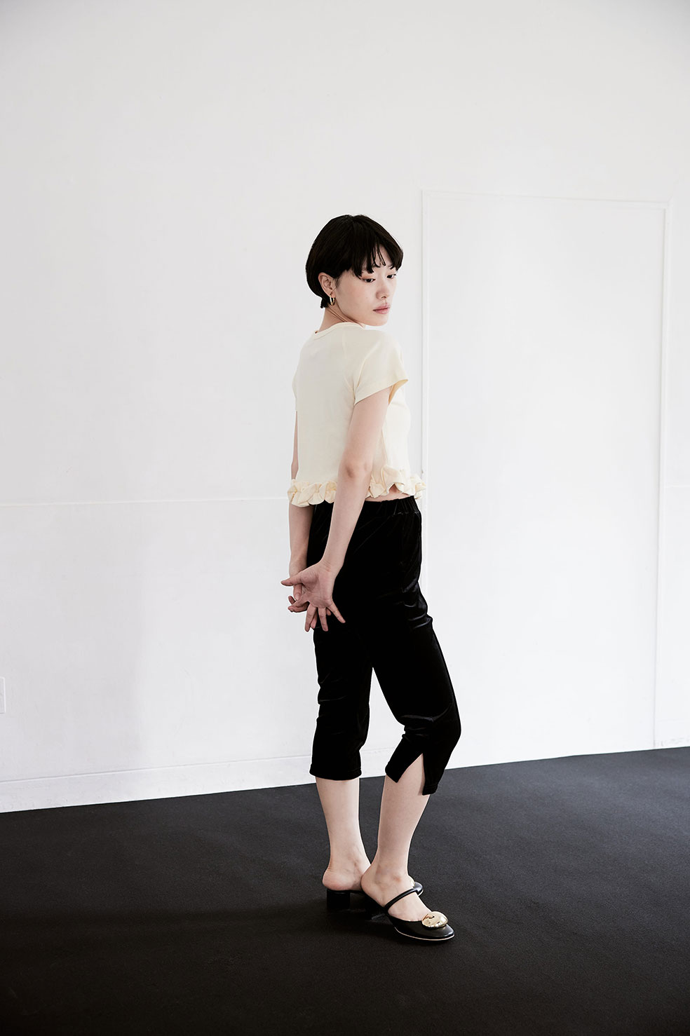 VELVET CAPRI PANTS (BLK) ¥17,000(¥18,700- tax in)